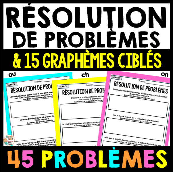 Cette ressource contient 45 résolutions de problèmes simples, soit 3 problèmes pour chacun de 15 graphèmes ciblés, permettant de travailler la lecture et les mathématiques simultanément.